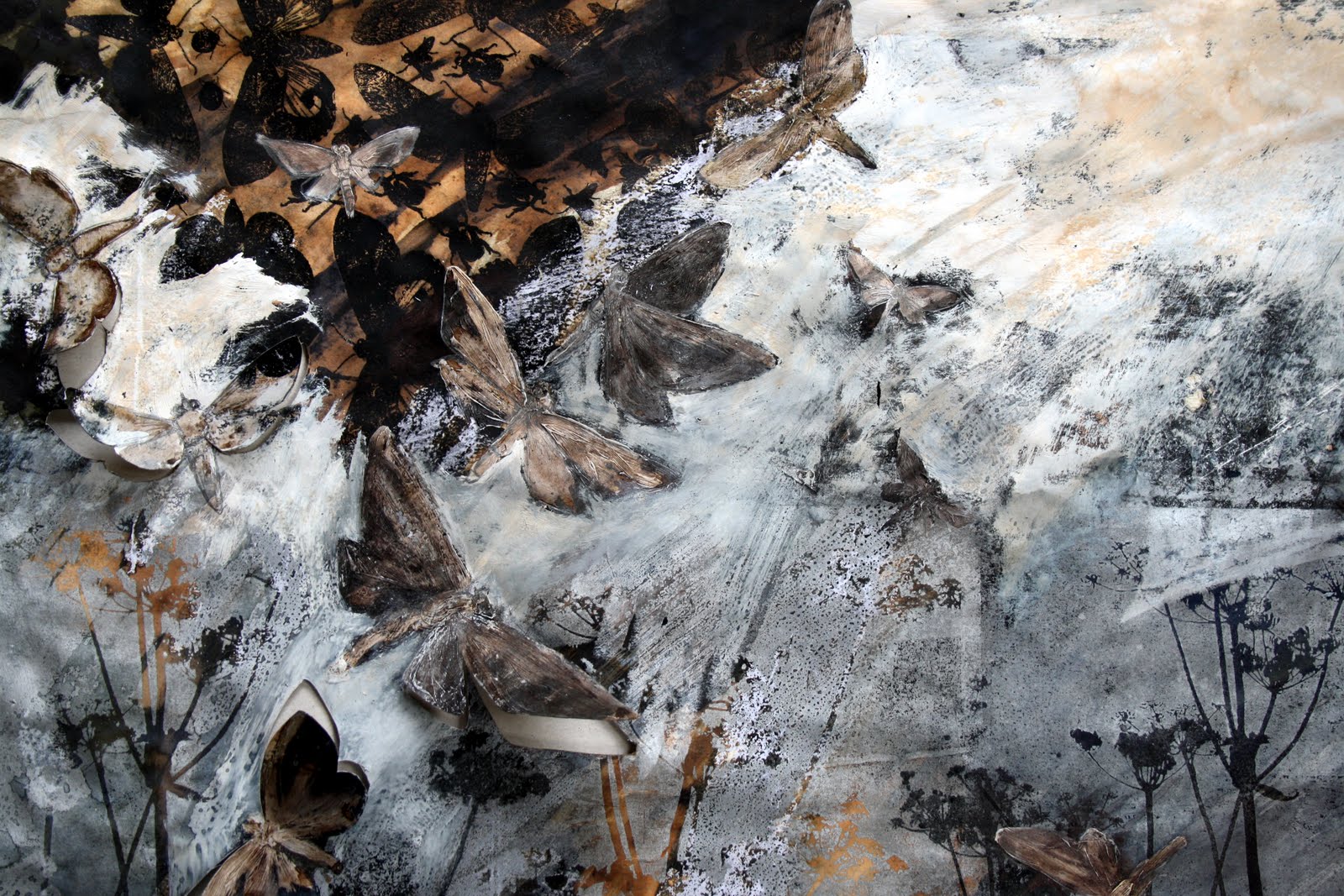 Looks like you're having a lot of fun. The cut out wings look fantastic, are you going to add another layer behind? I too love the monochromatic look but the orange has a warm glow reminiscent of weathered metals - lovely.