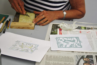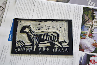 discovered that the prints semi dried over night and did not have the sticky quality I usually find with oil based ink when relief printing...worth more experimentation.