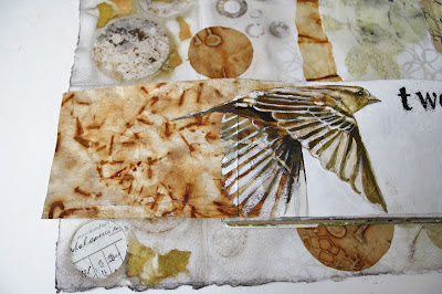 I have compiled the substrates that I have drawn, inked and painted on. Now is the time to work into these pieces or covering up anything I don't like. Also to use those precious bits and pieces that have been languishing in a stash...now is that moment for these treasures to shine.