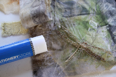 I try things out first, moving unglued things around before I commit myself to sticking. I particularly like the way tissue paper, rusted or plain blends into the surface when the PVA is on it.