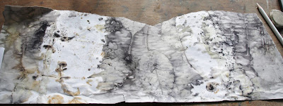 I don't know about you but I find this next bit daunting. Washing ink into the surface. I often look at the piece and think, just leave it now! But this would lack courage...and what's the worse that could happen? I am risk averse so I always dilute the ink first, so I don't commit myself immediately, then build up gradually. Especially as I added green ink at this point.