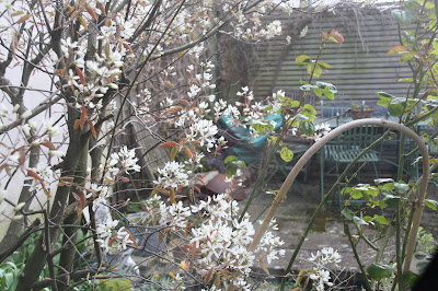 My garden is beginning to wake up and this is the view from my shed. This will be fleeting as like most spring flowers this blossom will last a week at most. But while it is here it is my inspiration.