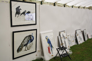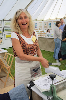 4 days in a marquee with 8 other printmakers demonstrating how to make a collagraph and print gum arabic transfer, well, that was what I was doing, other printmaking techniques were available in the tent.