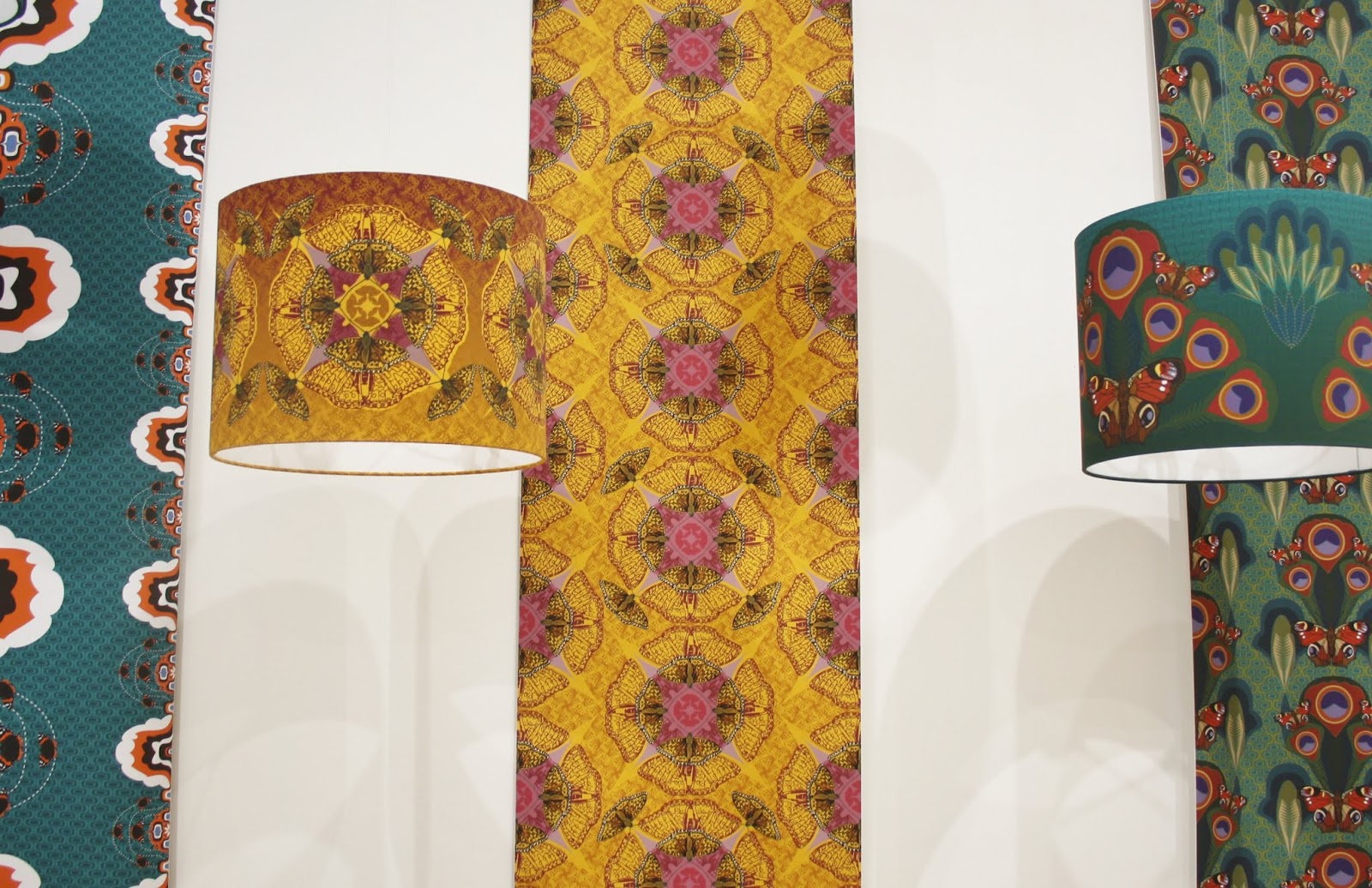 This time she has been inspired particularly by the British Butterflies to design her first digitally printed wallpapers to sit along side some coordinating lampshade designs also digitally printed on fabric. She has designed and made a special laser cut and screen printed mirror surround for a convex mirror, which includes all the butterflies depicted in her wallpapers.