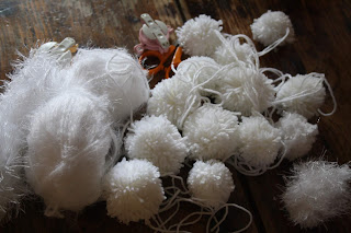 I ran a very enjoyable Christmas fairy workshop at the end of November at the yard. Another excuse to get the pom pom makers out. Nothing says Christmas like a fabric pom pom, especially in net or velvet. These ladies are waiting for wings and faces.