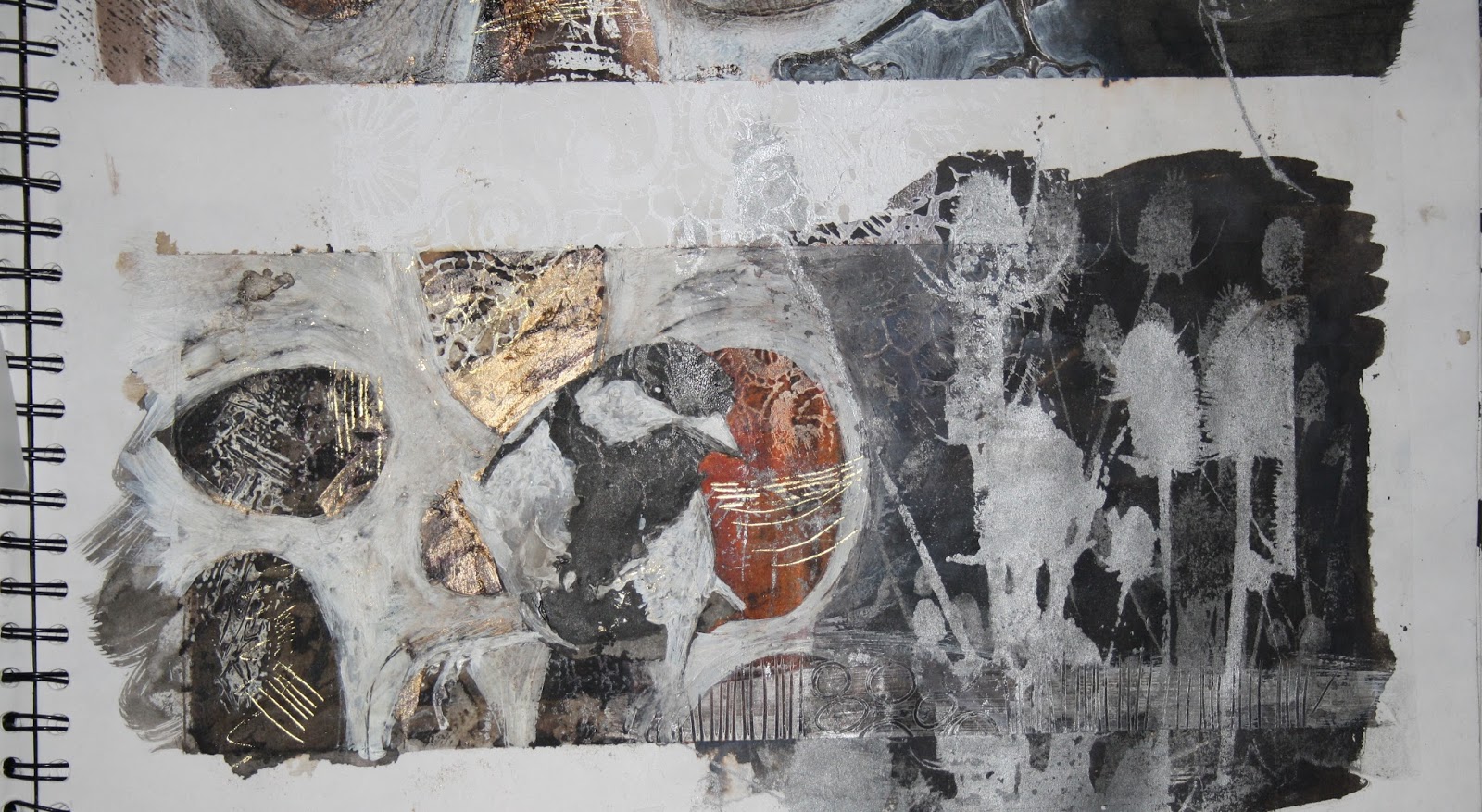 My main task this summer was to try and create these sketch book pages in collagraph form.