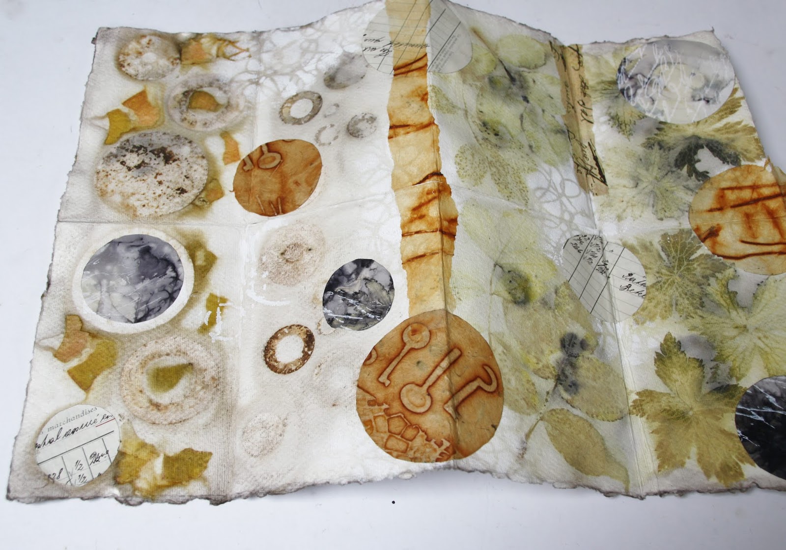 I often like the soft marks left on the back of eco printed paper and this book form shows that off nicely.