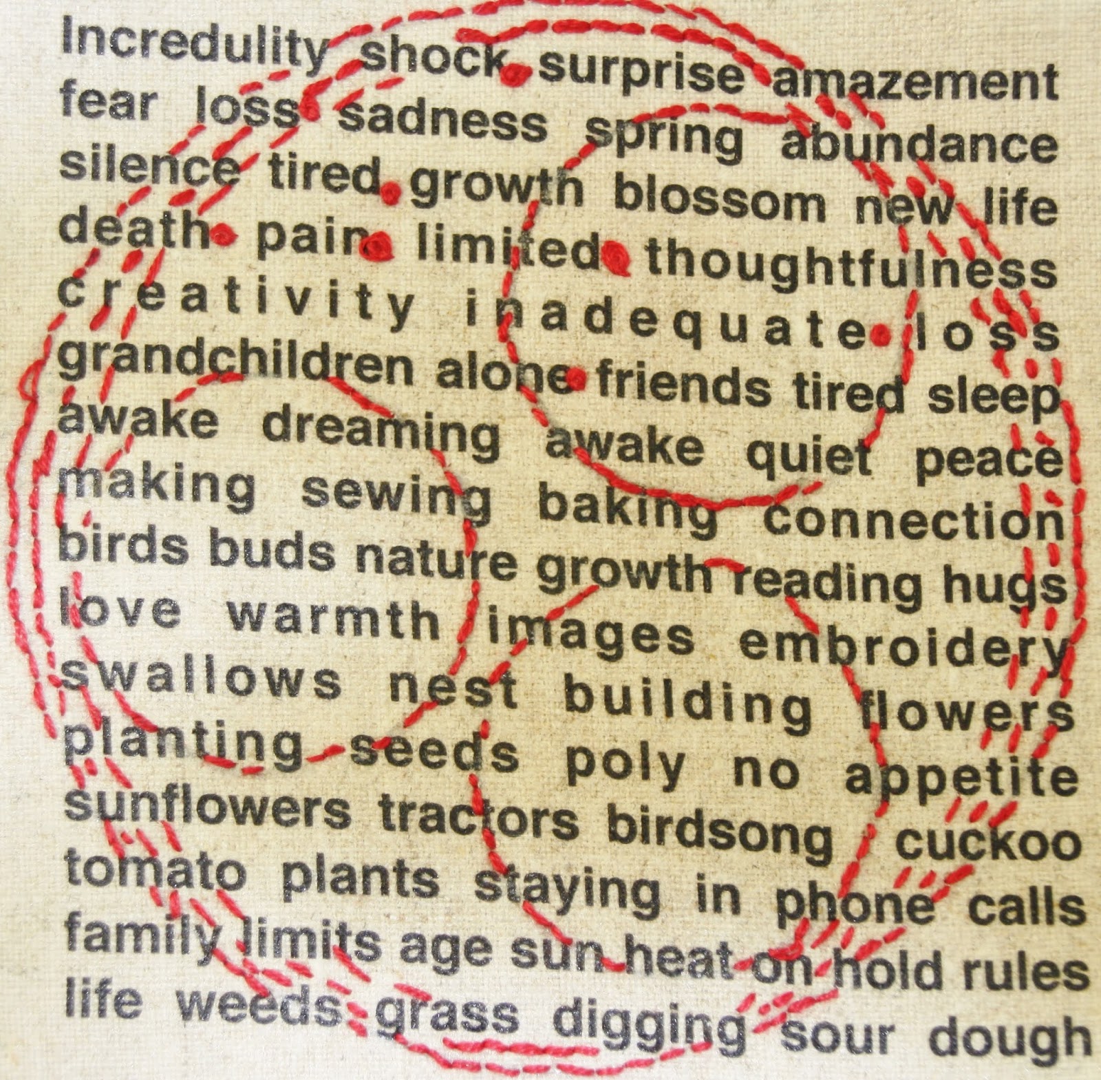 Everyone has made beautiful work, but there are a few names I recognise joining in with this massive community project. The printmaker Tor Hildyard sent me Hugs ready printed and stitched.